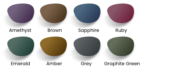 Leće Transitions® GEN S™ dostupne su u 8 ekskluzivnih boja, uključujući najnoviji dodatak: boju rubina. Te živahne boje optimizirane su tako da zadržavaju svoj ton boje bez obzira na svjetlosne uvjete.